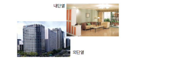 - 외벽이나 지붕의 구조체 바깥쪽(실외측)에 단열재를 대어 시공하는 방법
